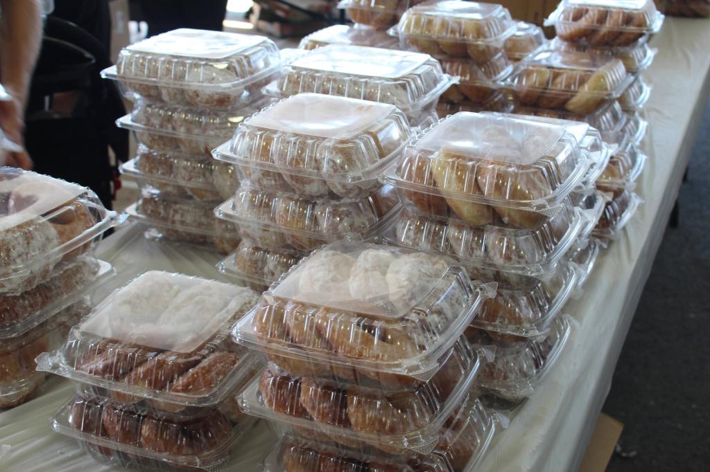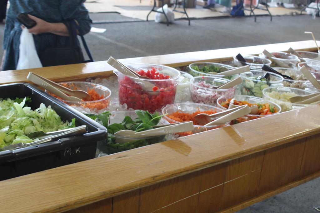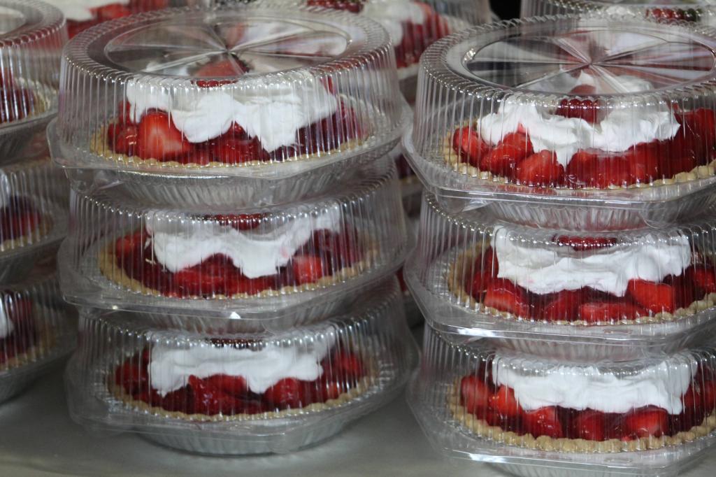 A variety of delicious food will be available, including chicken bbq, pork sandwiches, large salad bar, subs, potato dinners, french fries, soft pretzels, donuts made on-site, soft ice cream, fruit pies, cakes, baked goods, and more.