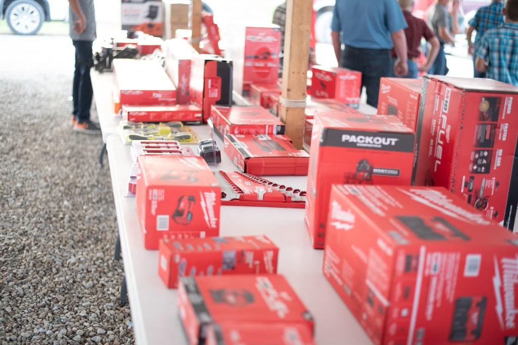 The live and silent auctions feature an extensive inventory that caters to many interests and needs. Bidders can find everything from professional-grade tools and heavy equipment to beautifully crafted indoor and outdoor furniture. The selection also highlights the artistry of the community through handmade quilts and local crafts, alongside a vibrant collection of trees, flowers, themed gift baskets, toys, and various gift certificates.