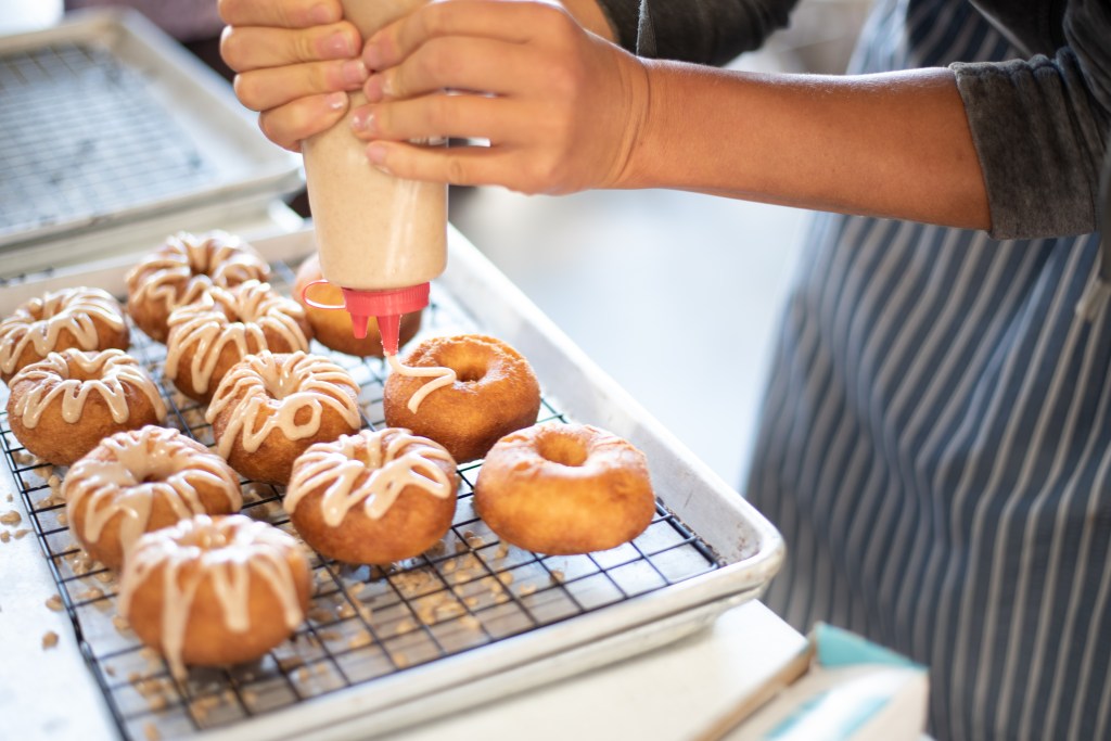 A diverse menu is available on-site, including pizza, french fries, and soft pretzels, as well as a salad bar and fruit cups for lighter fare. The selection of sweets features donuts, ice cream, pies, and various other baked goods.
