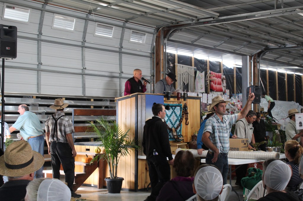 The selection includes handmade quilts and furniture alongside practical items such as farm supplies, hardware, and tools. Attendees can also find shrubbery, plants, collectibles, and toys, with many other items available throughout the day.